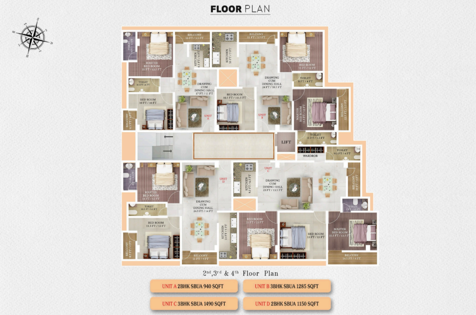 Sqft: 890-1490sqft