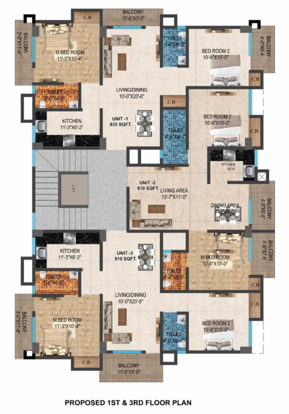 Sqft: 810-1350sqft